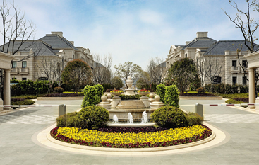 法式排屋的规划布局多遵循中轴对称的原则,注重突出仪式感与价值感。注重景观和建筑立面相互的借景和对景,组团内建筑平行布局,边套错落布局,形成围合感,后院强调私密性。